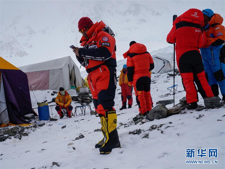 5月7日,2020珠峰高程測量登山隊進駐海拔6500米的前進營地。新華社特約記者扎西次仁攝