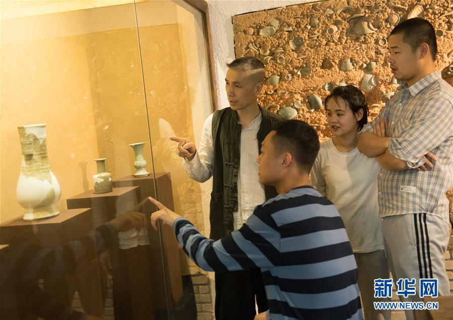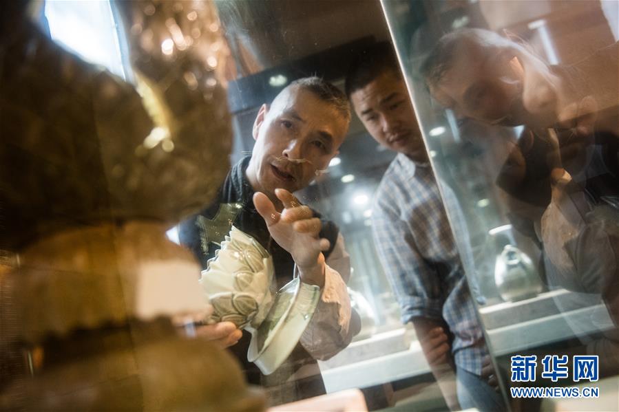 5月7日,瓷器愛好者在龍泉青瓷裝飾紋樣研究所參觀。1965年出生的項宏金,被浙江龍泉年輕一代瓷人稱為“項哥”,他從20世紀(jì)90年代開始收集龍泉青瓷標(biāo)本,研究青瓷紋樣。2014年出版著作《龍泉青瓷裝飾紋樣》,次年開設(shè)龍泉青瓷裝飾紋樣研究所,將自己收藏的千余件標(biāo)本跟瓷器愛好者、創(chuàng)作者免費(fèi)分享。新華社記者翁忻旸攝