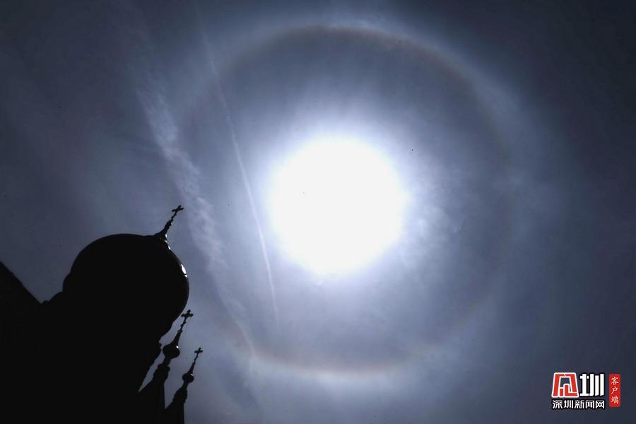 罕見!哈爾濱現超大巨型日暈