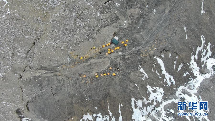 這是海拔5800米的過(guò)渡營(yíng)地(5月8日攝,無(wú)人機(jī)照片)。珠峰過(guò)渡營(yíng)地海拔5800米,是連接前進(jìn)營(yíng)地和珠峰大本營(yíng)的重要一站。登山愛(ài)好者從大本營(yíng)徒步大約四個(gè)小時(shí)就能抵達(dá)過(guò)渡營(yíng)地。此段路程亂石林立,同時(shí)也能欣賞壯美的冰川。新華社記者孫非攝