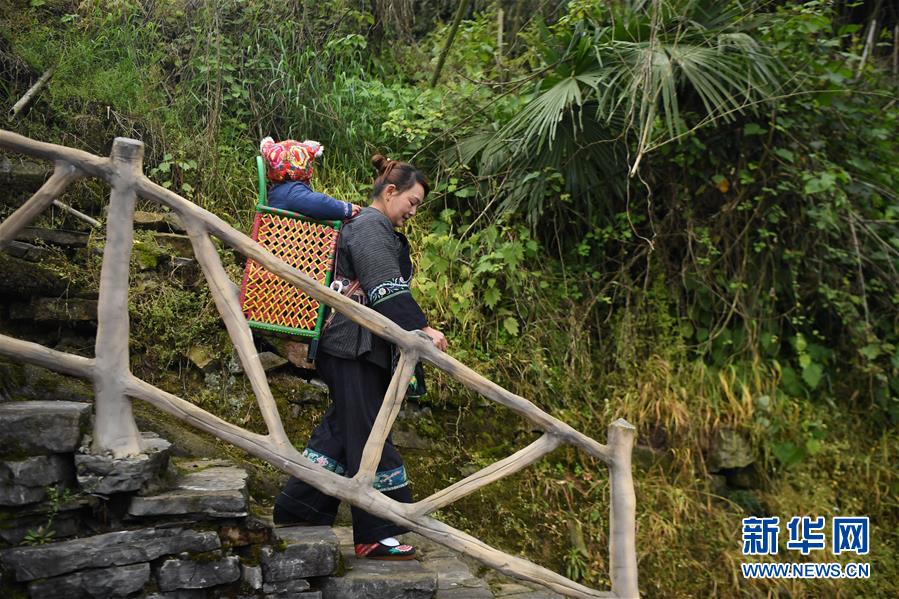 吳美金背著孫子走在十八洞村中,準(zhǔn)備前往村里的苗繡合作社(4月24日攝)。1967年出生的吳美金,1992年嫁入飛蟲村(現(xiàn)十八洞村飛蟲寨)時(shí),只有爛泥路的飛蟲村不僅田土少,掙錢活路也少,生活十分困難。2014年,吳美金加入了十八洞村苗繡特產(chǎn)農(nóng)民專業(yè)合作社,從小就會(huì)的苗繡傳統(tǒng)手藝如今成了家庭增收的法寶,不僅在家門口就把錢掙了,同時(shí)還能照顧年幼的孫子孫女?!艾F(xiàn)在的日子,比年輕的時(shí)候好多了?!眳敲澜鹫f(shuō)。新華社記者薛宇舸攝