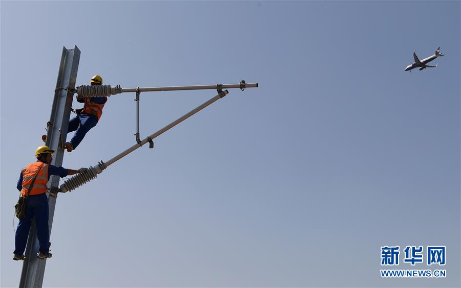 5月10日,中鐵電氣化局工程人員在鄭州新鄭機(jī)場(chǎng)至鄭州南站城際鐵路工地施工。新華社記者郝源攝