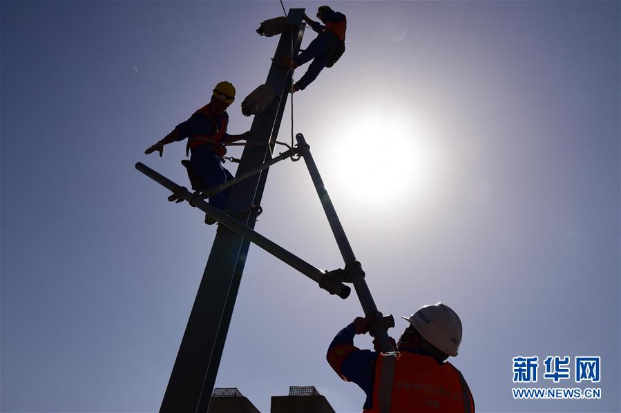 5月10日,中鐵電氣化局工程人員在鄭州新鄭機(jī)場至鄭州南站城際鐵路工地施工。新華社記者朱祥攝