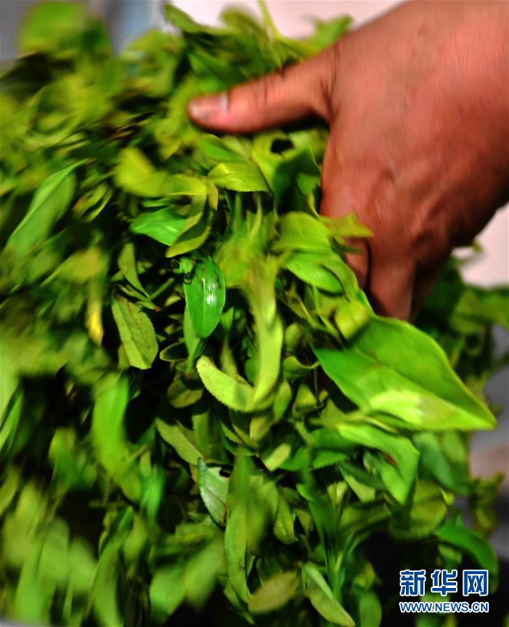 游玉瓊在對武夷巖茶中的白雞冠品種按白茶做法進(jìn)行創(chuàng)新研制(5月10日攝)。新華社記者魏培全攝