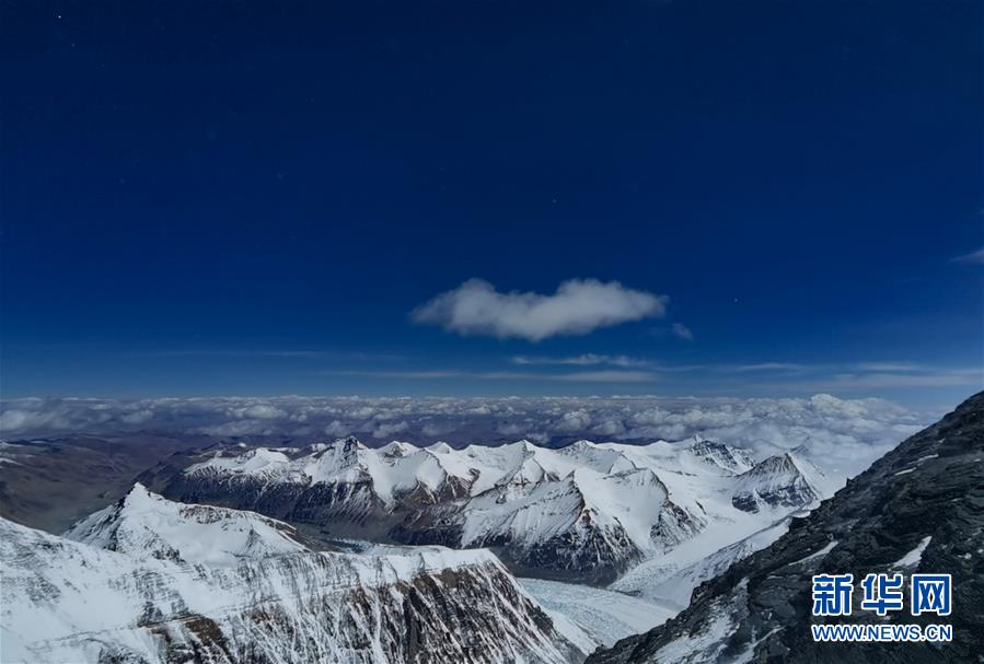 從珠峰海拔7028米以上拍攝的壯美景色(5月12日攝)。從珠峰海拔7028米的一號(hào)營(yíng)地繼續(xù)向上攀登,沿途景色十分壯美。新華社特約記者拉巴攝