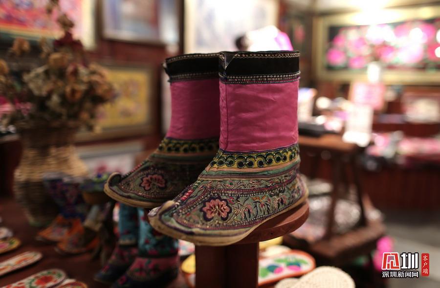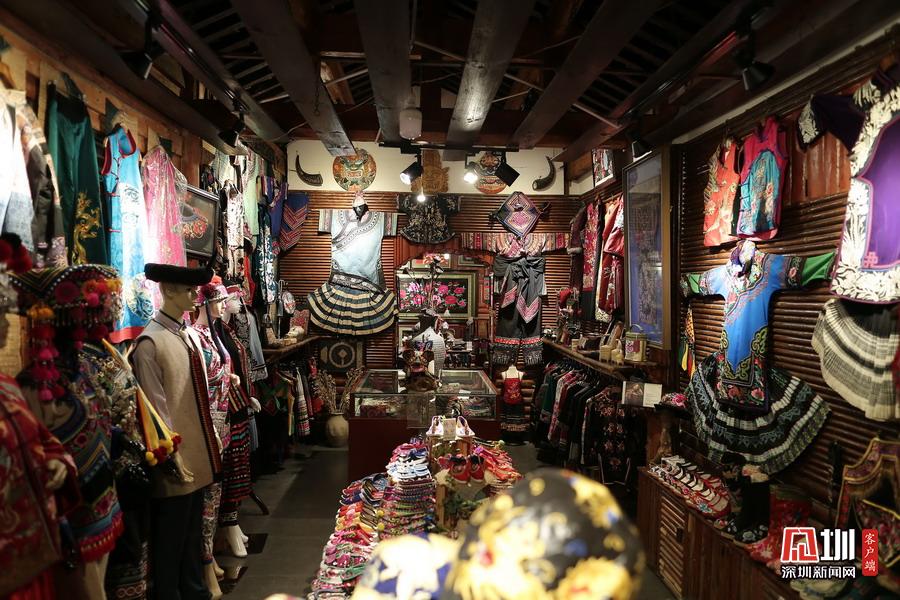 彝家公社內(nèi)陳列的彝族刺繡服飾。