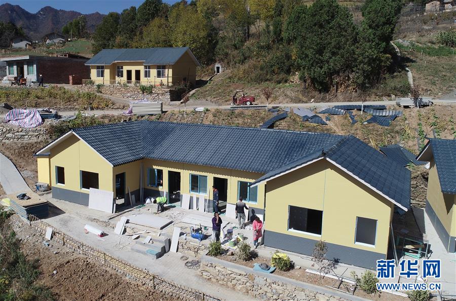 這是安康市漢濱區(qū)茨溝鎮(zhèn)西溝村針對(duì)D級(jí)危房進(jìn)行重建施工的輕鋼裝配式房屋(2018年10月29日攝,無(wú)人機(jī)照片)。新華社記者邵瑞攝