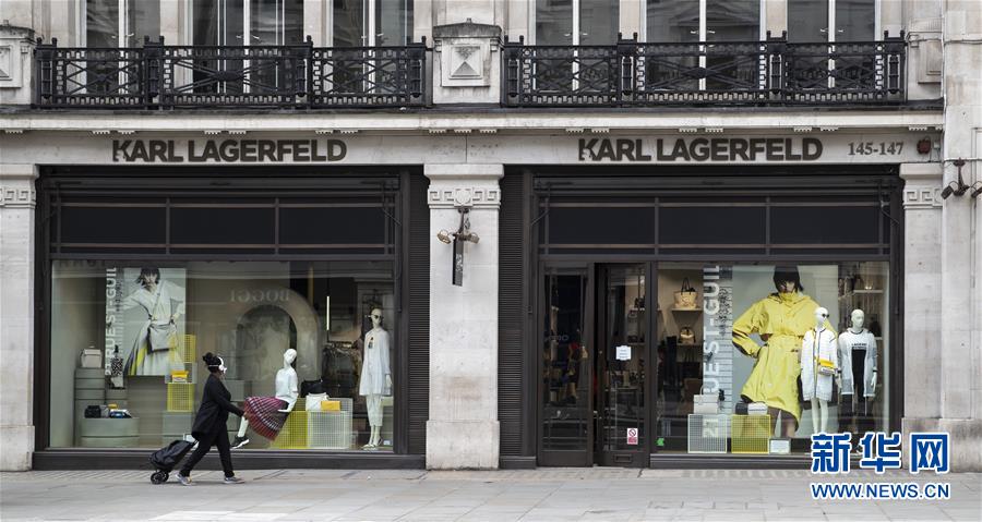 5月12日,一名女子從英國倫敦攝政街關閉的店鋪前經(jīng)過。