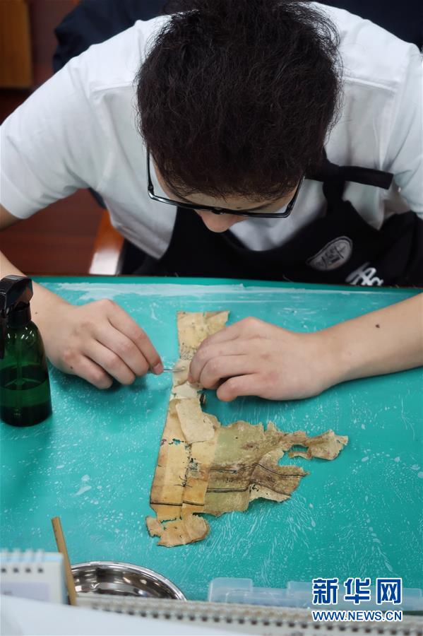5月13日,古籍修復(fù)師在對書頁進行修復(fù)。天一閣藏品修復(fù)部目前有修復(fù)師14人,每年約修復(fù)古籍14000余頁。據(jù)介紹,修復(fù)一冊古籍通常需要1至2個月,有的甚至需要1年以上。新華社記者鄭夢雨攝
