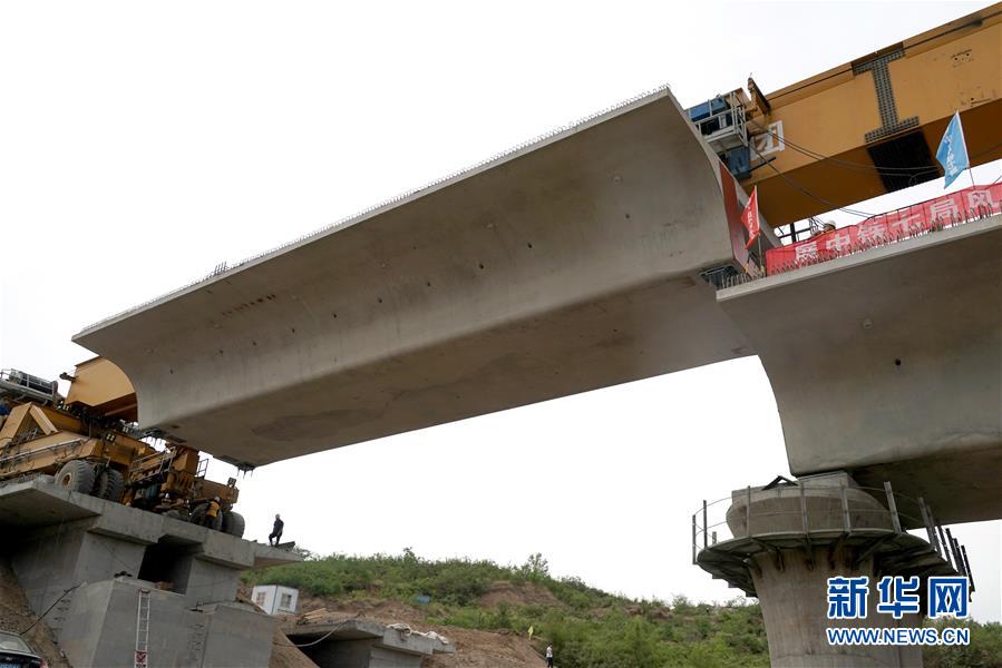 5月13日,運架一體機在位于河南焦作的施工現(xiàn)場進行架梁作業(yè)。 當日,隨著最后一榀長24米、重552噸的箱梁架設(shè)就位,太焦高鐵全線橋梁架設(shè)完成。從山西太原到河南焦作的太焦高鐵是國家規(guī)劃建設(shè)的“八縱八橫”高速鐵路網(wǎng)的重要組成部分,計劃2020年底建成通車。 新華社記者李安攝