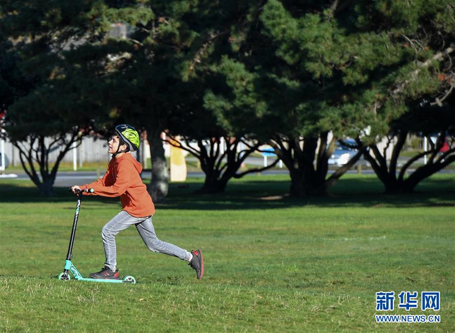 5月14日,一名男孩在新西蘭首都惠靈頓郊外的公園玩耍。當天是新西蘭從新冠疫情防控響應三級下調(diào)到二級的第一天,經(jīng)濟活動全面重啟,公園等公共設施首次重新開放,中小學生將于5月18日全面返校復課。新華社記者郭磊攝