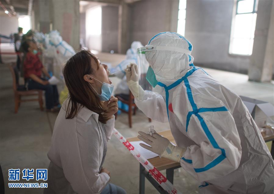 5月15日,在武漢華生漢口城市廣場(chǎng)四期檢測(cè)點(diǎn),工作人員對(duì)市民進(jìn)行核酸檢測(cè)。近日,武漢將對(duì)全市市民有序開展核酸檢測(cè),進(jìn)一步摸清無(wú)癥狀感染者底數(shù),進(jìn)而有效管控。新華社記者肖藝九攝