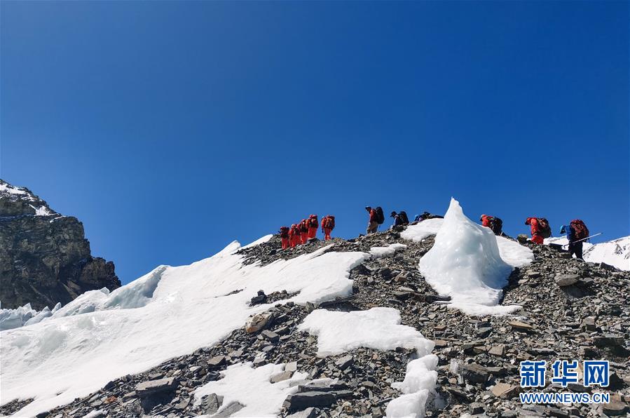 2020珠峰高程測(cè)量登山隊(duì)在前往海拔6500米的前進(jìn)營(yíng)地途中(5月17日攝)。新華社特約記者拉巴攝