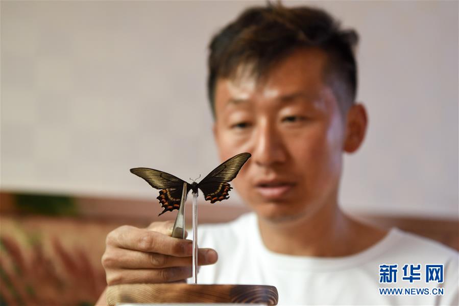 在吉木薩爾縣七彩蝶園,關(guān)富云在制作蝴蝶標(biāo)本(5月15日攝)。走進關(guān)富云的七彩蝶園,游客不僅可以近距離接觸翩翩起舞的蝴蝶,還可以欣賞蝴蝶破繭成蝶的蛻變過程。今年34歲的關(guān)富云用9年的時間實現(xiàn)了自己的“蝴蝶夢”,完成美麗的“蝶變”。關(guān)富云家住新疆吉木薩爾縣北地社區(qū)。2011年,他看到一檔農(nóng)業(yè)致富節(jié)目,萌生了養(yǎng)殖蝴蝶的想法。關(guān)富云說,當(dāng)時蝴蝶養(yǎng)殖還是一種新興產(chǎn)業(yè),他抱著試一試的想法,在海南學(xué)習(xí)了3個月蝴蝶養(yǎng)殖,帶回100多個蝶蛹在家試驗養(yǎng)殖。蝴蝶的生存周期短,在當(dāng)?shù)仞B(yǎng)殖需要克服溫度、濕度、病蟲害等問題。關(guān)富云不斷嘗試,越挫越勇,羽化成功的蝴蝶在2014年終于突破了萬只。蝴蝶的色彩艷麗,活體蝴蝶可用于婚慶、開業(yè)慶典等活動中放飛,可以取得很好的收益。但它的生命短暫,如何才能最大化蝴蝶的效益,留住它的美呢?關(guān)富云動起了心思,開始嘗試制作標(biāo)本和蝶翅畫?!昂宛B(yǎng)殖不同,做蝶翅畫是個創(chuàng)作的過程,從選擇標(biāo)本到粘貼,每一步都要突出美感。”關(guān)富云介紹,一幅色彩明艷、栩栩如生的蝶翅畫耗時多日才能完成。如今,關(guān)富云的活體蝴蝶和蝶翅畫通過線上線下銷售,產(chǎn)品還銷往北京、廈門等地。關(guān)富云的蝴蝶產(chǎn)品得到市場的認(rèn)可,政府也對他給予大力支持。2019年,吉木薩爾縣在泉子街鎮(zhèn)建起蝴蝶觀賞園,吸引了不少游客到此參觀游玩。對于未來的發(fā)展,關(guān)富云信心滿滿,“我希望把蝴蝶產(chǎn)業(yè)發(fā)展到天山南北,讓人們在寒冷的冬季也能觀賞到蝴蝶,并且讓更多人參與其中,致富脫貧”。新華社記者丁磊攝