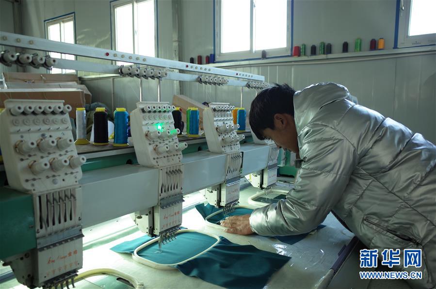 在西藏拉薩市達(dá)孜區(qū),縫紉工人加央旦增在服裝車間操作縫紉機(jī)(5月15日攝)。新華社記者格桑邊覺(jué)攝