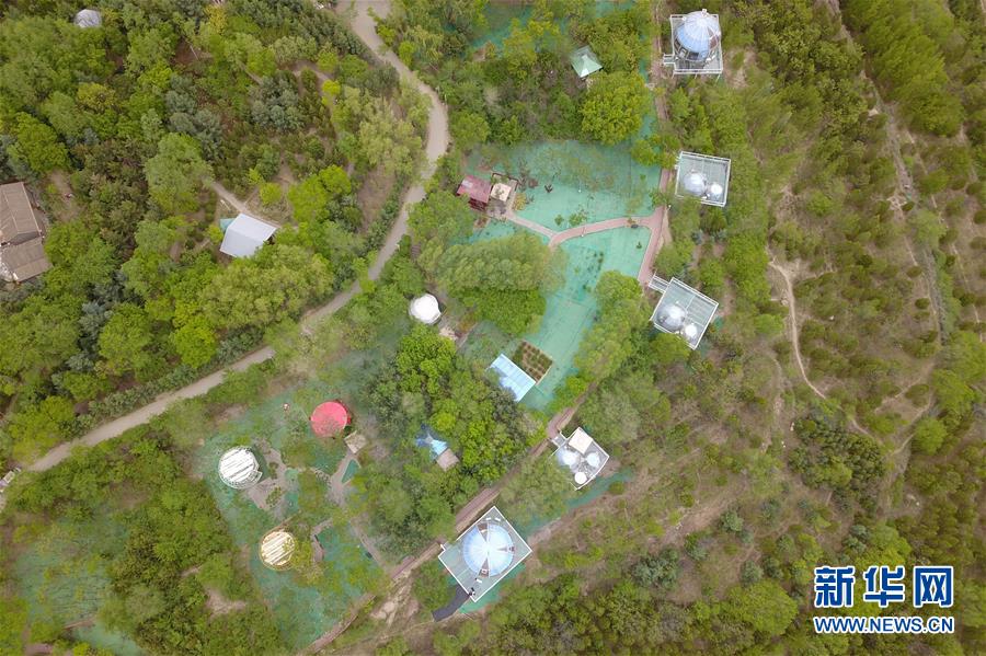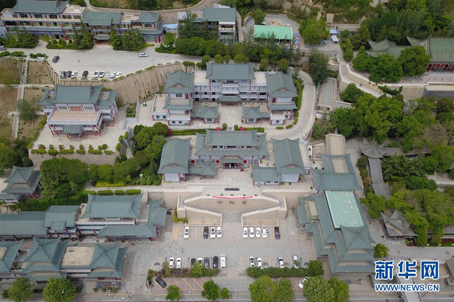 這是5月18日在蘭州市城關(guān)區(qū)拍攝的皋蘭山下五泉山公園初夏景象(無人機(jī)照片)。