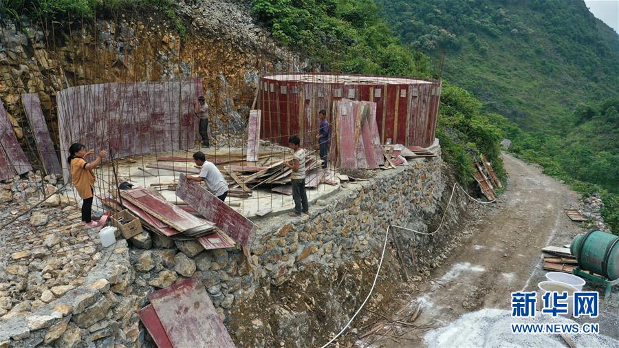 大化瑤族自治縣雅龍鄉(xiāng)勝利村群眾在建設水柜(2019年6月6日攝)。新華社記者張愛林攝
