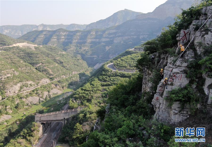 在太行山深處的中國鐵路鄭州局集團有限公司月山工務(wù)段,有一群被稱為捅山工的人。每年汛期來臨前,他們要對山體進行檢查、清理,在懸崖峭壁間“行走”,揮動著手中的鋼釬,排除威脅鐵路行車安全的危石。