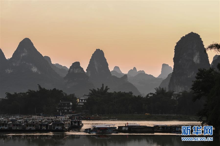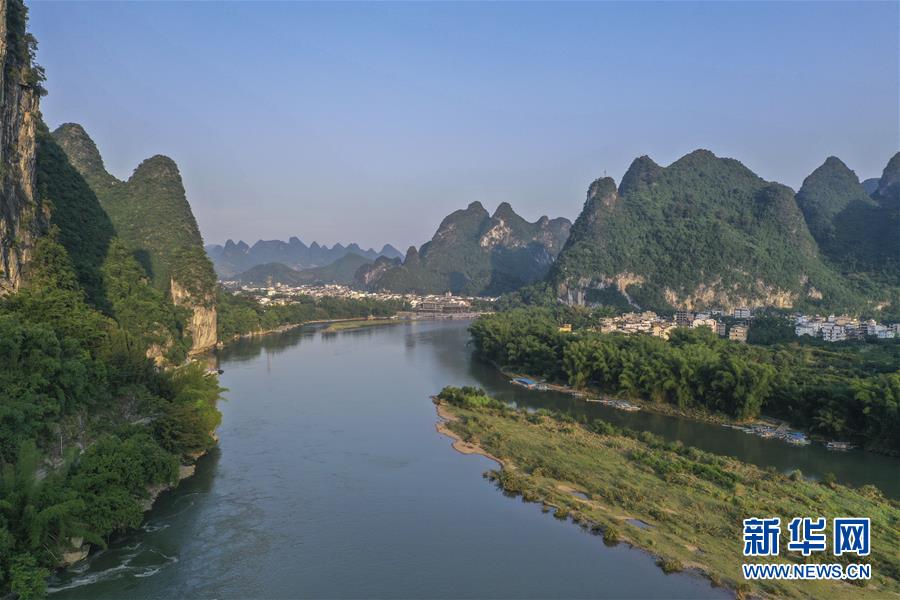 這是在廣西桂林市陽朔縣興坪鎮(zhèn)拍攝的山水風(fēng)光(5月19日攝)?!吧n蒼森八桂,茲地在湘南。江作青羅帶,山如碧玉篸……”一千多年前,唐朝詩人韓愈寫盡桂林山水之美。初夏時(shí)節(jié),在廣西桂林市陽朔縣興坪鎮(zhèn),藍(lán)天白云下,煙雨朦朧中,桂林山水盡顯秀美。新華社記者 曹祎銘 攝