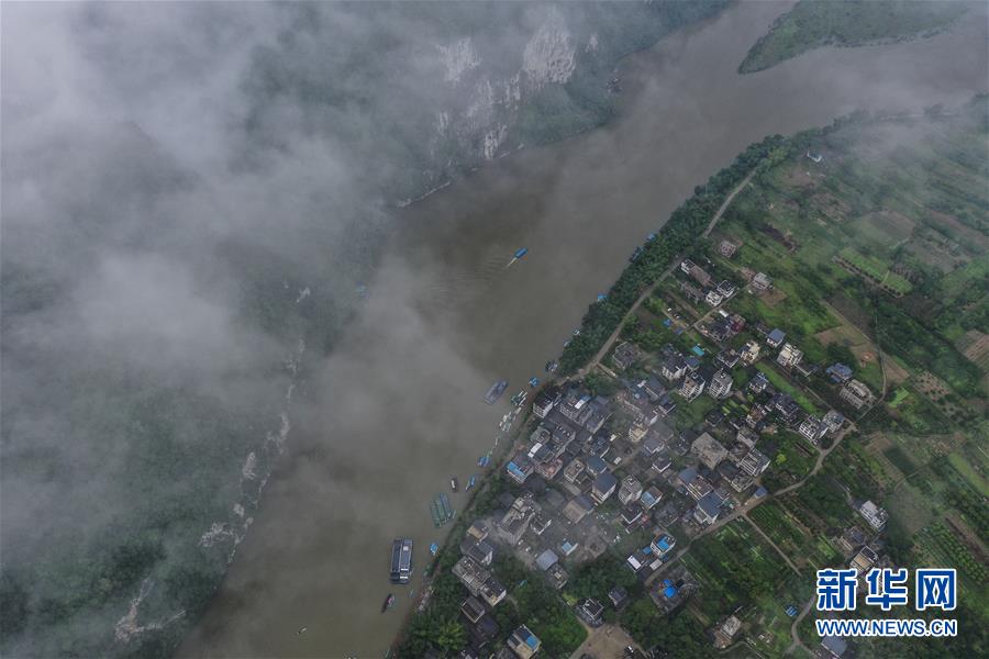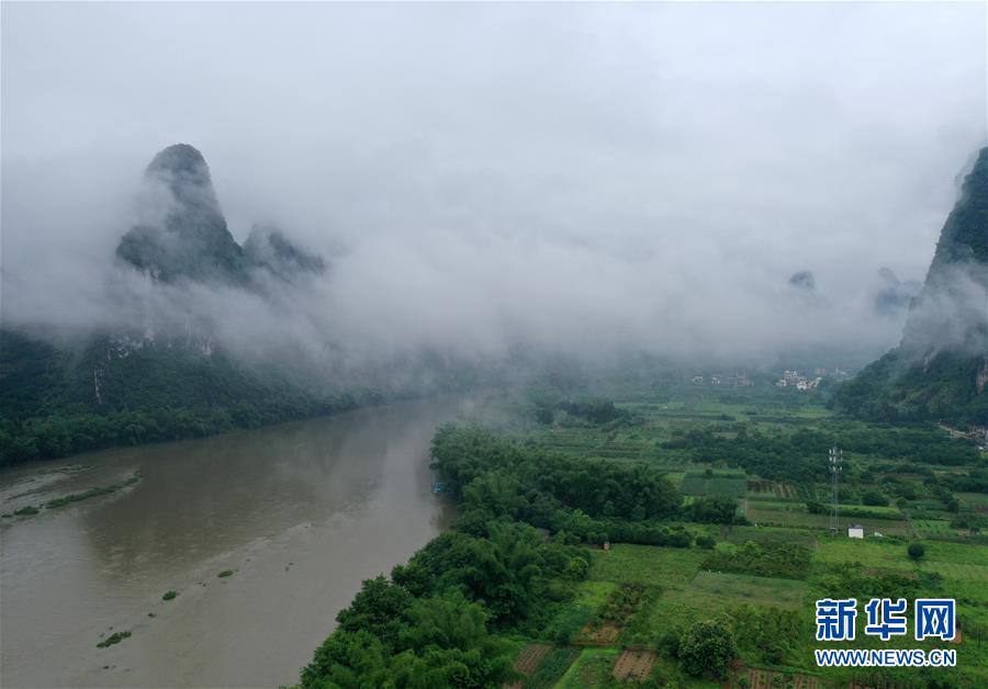這是在廣西桂林市陽朔縣興坪鎮(zhèn)拍攝的山水風(fēng)光(5月19日攝)?!吧n蒼森八桂,茲地在湘南。江作青羅帶,山如碧玉篸……”一千多年前,唐朝詩人韓愈寫盡桂林山水之美。初夏時(shí)節(jié),在廣西桂林市陽朔縣興坪鎮(zhèn),藍(lán)天白云下,煙雨朦朧中,桂林山水盡顯秀美。新華社記者 崔博文 攝