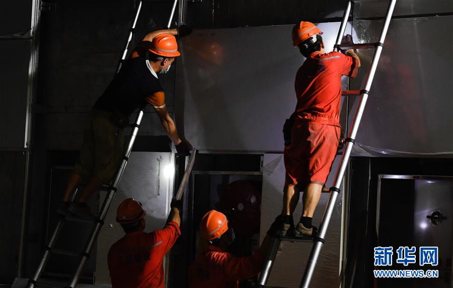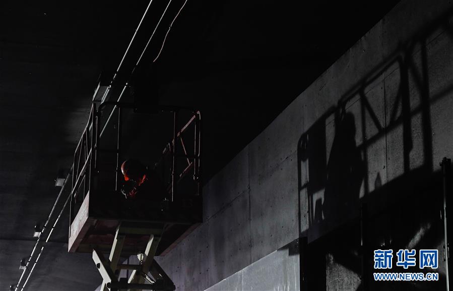 5月23日,工人在??谖拿鳀|越江通道項目隧道內(nèi)安裝照明設(shè)備。新華社記者楊冠宇攝