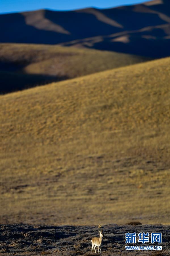這是2019年11月9日在青海省果洛藏族自治州瑪沁縣境內(nèi)的草原上拍攝的藏原羚。新華社記者張龍攝