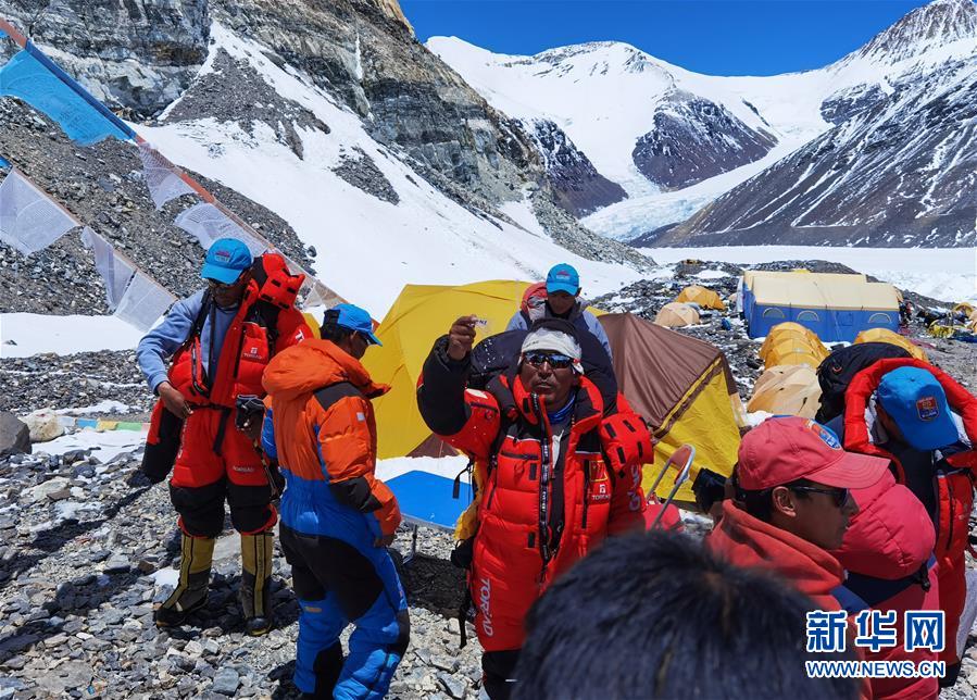 5月24日,2020珠峰高程測(cè)量登山隊(duì)部分人員從海拔6500米的前進(jìn)營(yíng)地出發(fā)。新華社特約記者拉巴攝