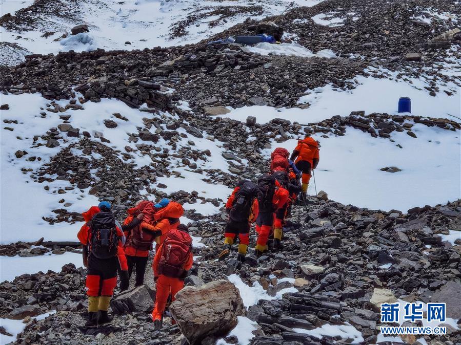 5月24日,2020珠峰高程測(cè)量登山隊(duì)部分人員從海拔6500米的前進(jìn)營地出發(fā)。