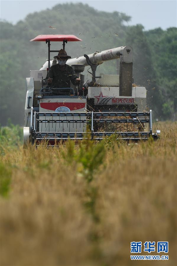 5月24日,農戶駕駛收割機在浙江省湖州市吳興區(qū)八里店鎮(zhèn)尹家圩糧油植保農機專業(yè)合作社的麥田里進行收割作業(yè)。新華社記者黃宗治攝