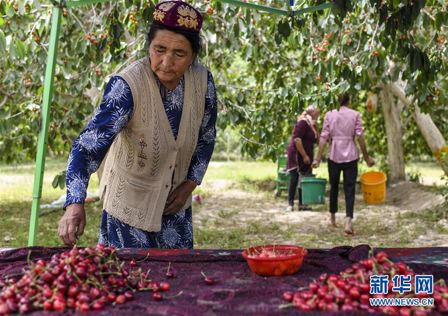 時至5月下旬,塔克拉瑪干沙漠邊緣的新疆莎車縣米夏鎮(zhèn)數(shù)千畝櫻桃樹碩果累累,吸引游人前來觀光采摘。近年來,深度貧困的南疆四地州將特色林果業(yè)與旅游業(yè)相結合,助力百姓脫貧增收。新華社記者王菲攝