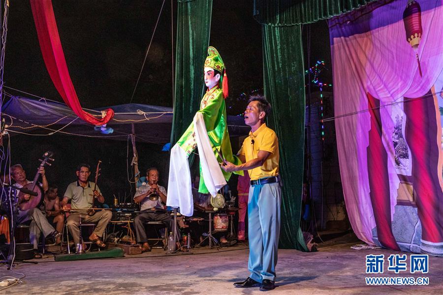 5月24日,海南臨高新風(fēng)人偶戲團(tuán)在臨高縣美朗村演出。
