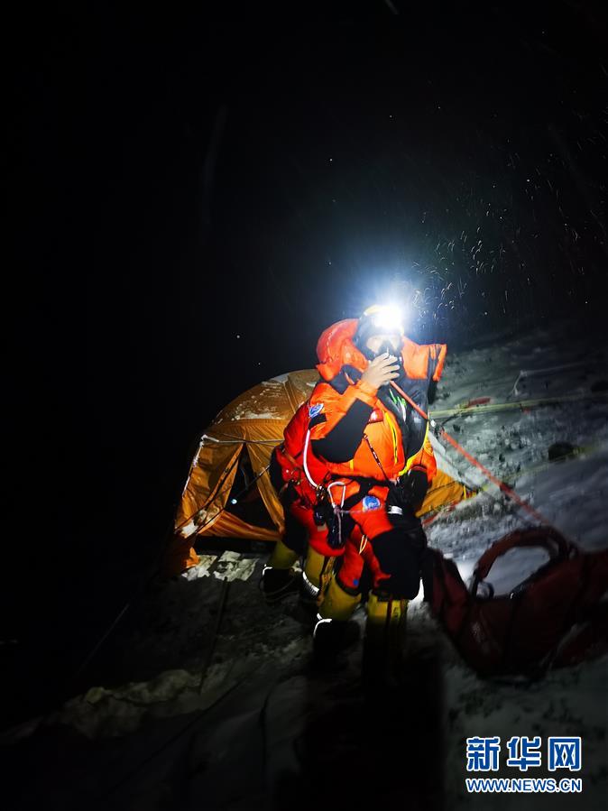 2020珠峰高程測(cè)量登山隊(duì)8名隊(duì)員,于27日2時(shí)10分許,從海拔8300米的突擊營(yíng)地出發(fā),向著頂峰挺進(jìn)!26日15時(shí)40分左右,沖頂組隊(duì)員抵達(dá)突擊營(yíng)地。26日16時(shí)35分,修路隊(duì)員修通了至頂峰的攀登路線。