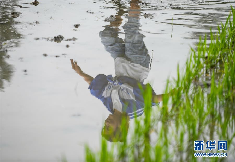 5月26日,都江堰市聚源鎮(zhèn)笆橋社區(qū)的農(nóng)技人員在整理水稻秧苗。初夏時(shí)節(jié),四川省都江堰市聚源鎮(zhèn)笆橋社區(qū)農(nóng)民搶抓農(nóng)時(shí)插秧,田間地頭一派繁忙的景象。新華社記者王曦?cái)z