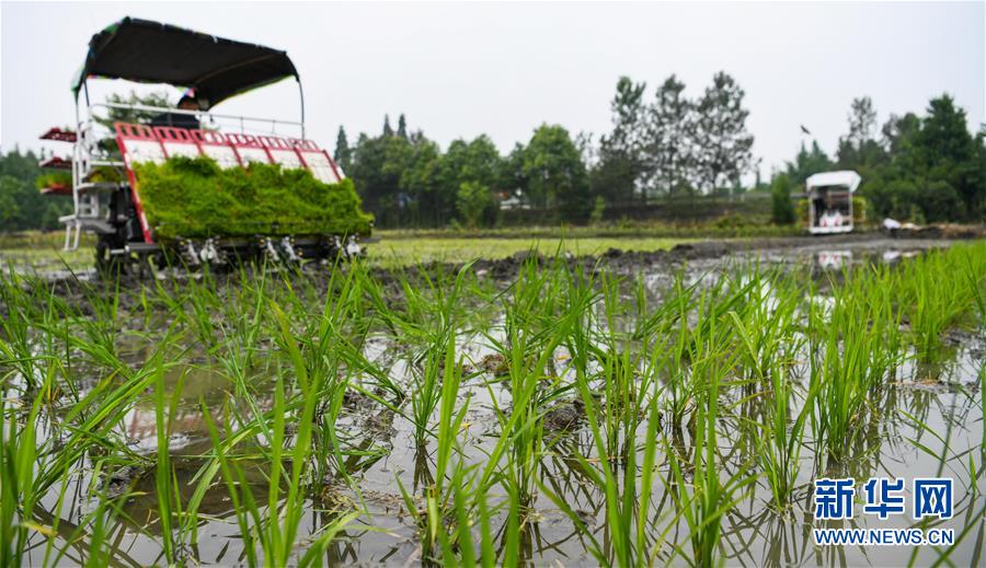 5月26日,都江堰市聚源鎮(zhèn)笆橋社區(qū)的農(nóng)技人員駕駛插秧機(jī)插秧。初夏時(shí)節(jié),四川省都江堰市聚源鎮(zhèn)笆橋社區(qū)農(nóng)民搶抓農(nóng)時(shí)插秧,田間地頭一派繁忙的景象。新華社記者王曦?cái)z