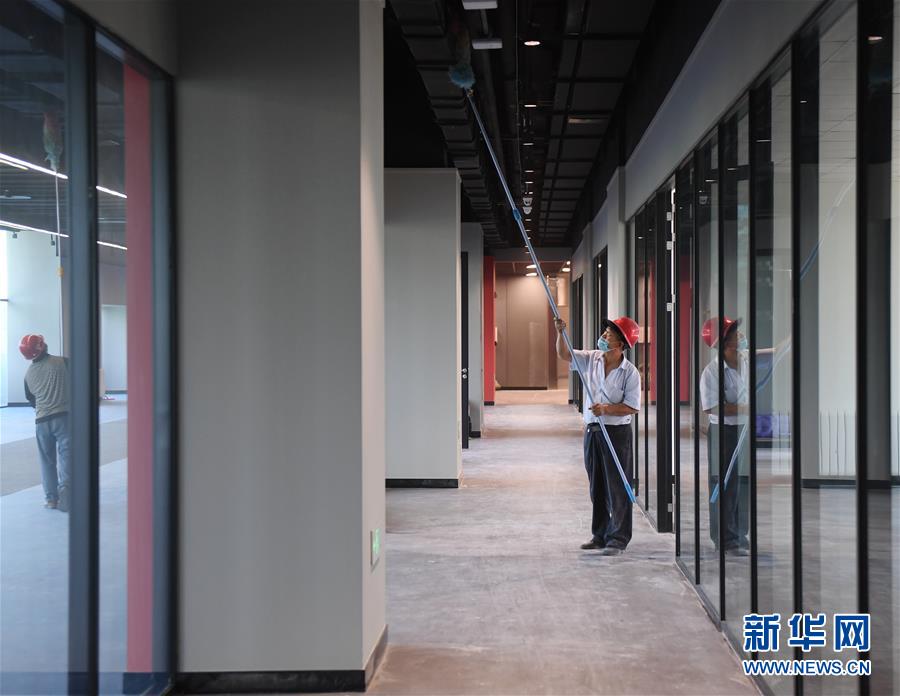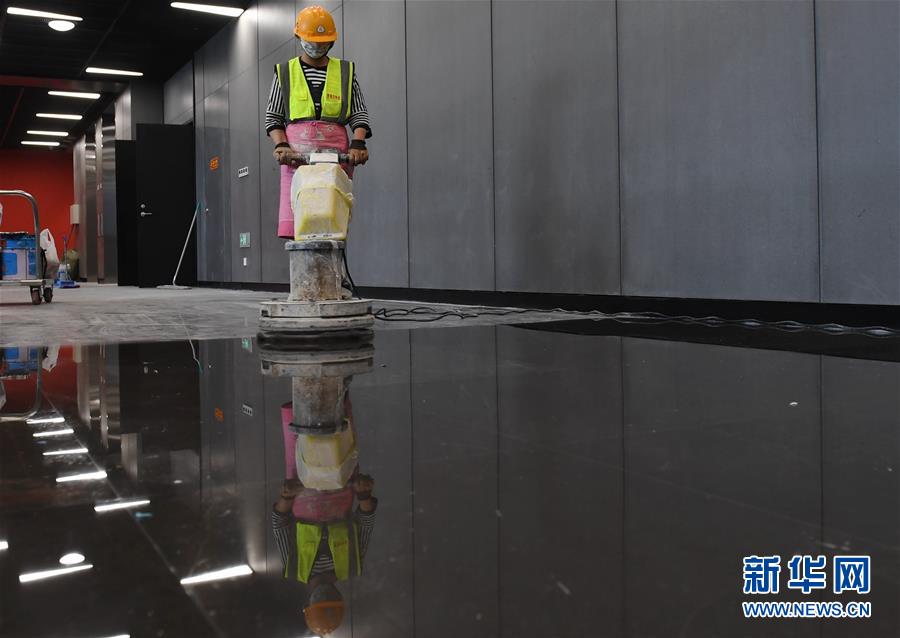 55月27日,保潔人員在“冰壇”內(nèi)部進行保潔工作。新華社記者張晨霖攝