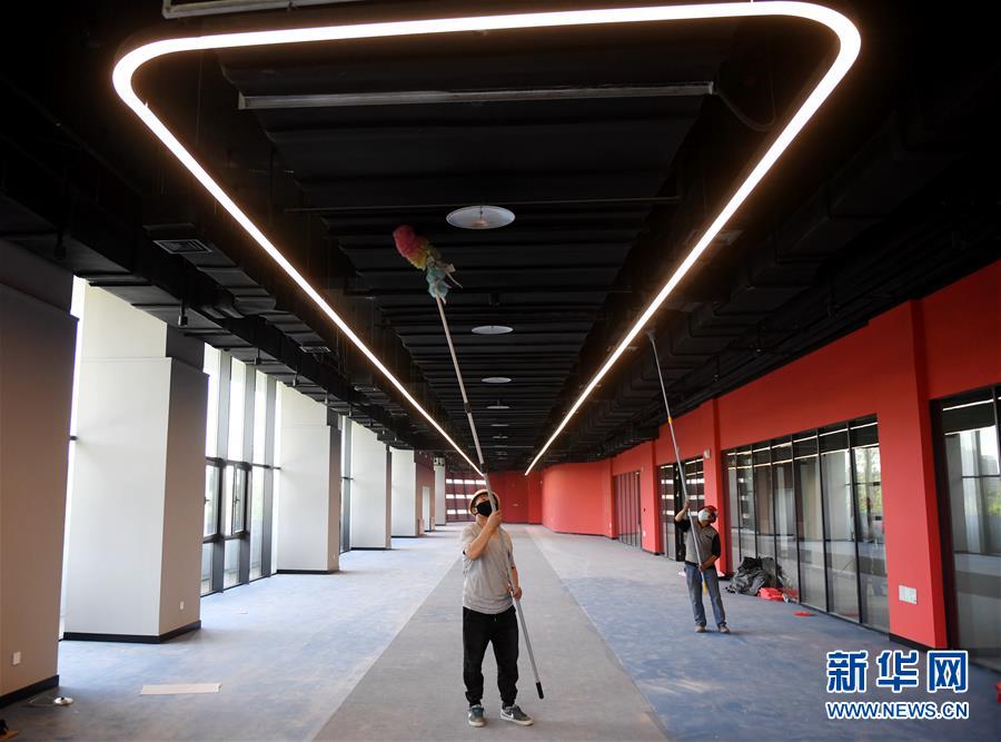 5月27日,保潔人員在“冰壇”內(nèi)部進行保潔工作。新華社記者張晨霖攝