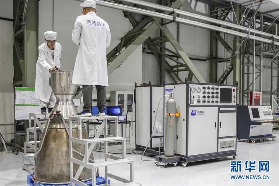 5月26日,工作人員在藍(lán)箭航天(湖州)智能制造基地發(fā)動機(jī)裝配區(qū)進(jìn)行發(fā)動機(jī)質(zhì)檢工作。新華社記者張玉薇攝