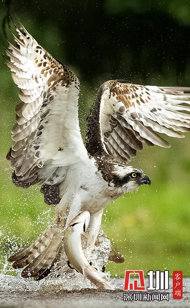 2020年5月28日?qǐng)?bào)道(具體拍攝時(shí)間不詳),54歲的Gladys Klip來(lái)自荷蘭,是一名銀行助理,他在蘇格蘭高地拍攝到魚(yú)鷹捕魚(yú)的精彩照片。畫(huà)面中,魚(yú)鷹快速俯沖而下,掠過(guò)水面,鷹爪隨即從水中成功抓起一條魚(yú)兒,濺起水花,整個(gè)過(guò)程精彩詮釋快準(zhǔn)狠。Gladys Klip稱他在早晨5點(diǎn)的時(shí)候已經(jīng)在等候拍攝。