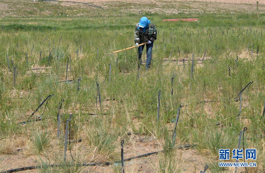 5月28日,工人在巴丹吉林鎮(zhèn)生態(tài)修復(fù)項(xiàng)目南部河道附近進(jìn)行補(bǔ)植作業(yè)。2017年以來(lái),內(nèi)蒙古阿拉善右旗在巴丹吉林鎮(zhèn)開(kāi)展生態(tài)修復(fù)項(xiàng)目,種植適合在當(dāng)?shù)厣L(zhǎng)的馬蓮、紅柳等植物,修復(fù)生態(tài)的同時(shí)也起到美化作用。巴丹吉林鎮(zhèn)是巴丹吉林沙漠旅游景區(qū)的游客集散地,這里常年干旱少雨,水資源匱乏。新華社記者徐欽攝