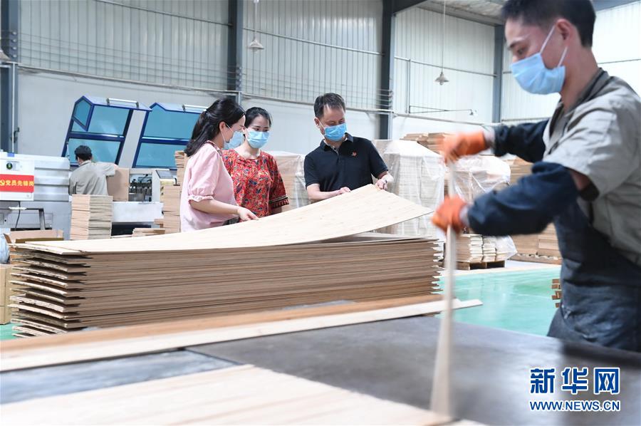 5月28日,邵武市委文明辦黨員干部張增忠(右二)在位于邵武經(jīng)濟開發(fā)區(qū)的一家公司了解企業(yè)復(fù)工復(fù)產(chǎn)情況。