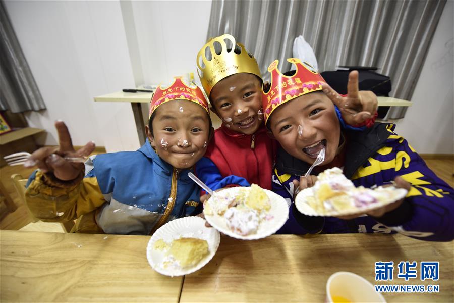 5月27日,玉麥鄉(xiāng)小學的孩子們在慶?!吧铡?。新華社記者王炳坤攝