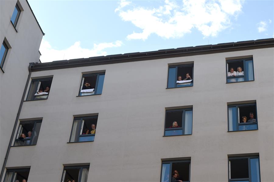 5月30日,在奧地利維也納“時代精神”酒店內(nèi),人們在房間窗口欣賞歌劇演出。當(dāng)日,奧地利首都維也納的一家名為“時代精神”的酒店為迎接“解封”后恢復(fù)營業(yè),在其庭院內(nèi)舉辦“窗口音樂會”。按照奧政府此前公布的“解封”時間表,從29日起,賓館酒店以及健身房、游泳池和游樂場等休閑娛樂場所有條件恢復(fù)運(yùn)營。新華社記者郭晨攝