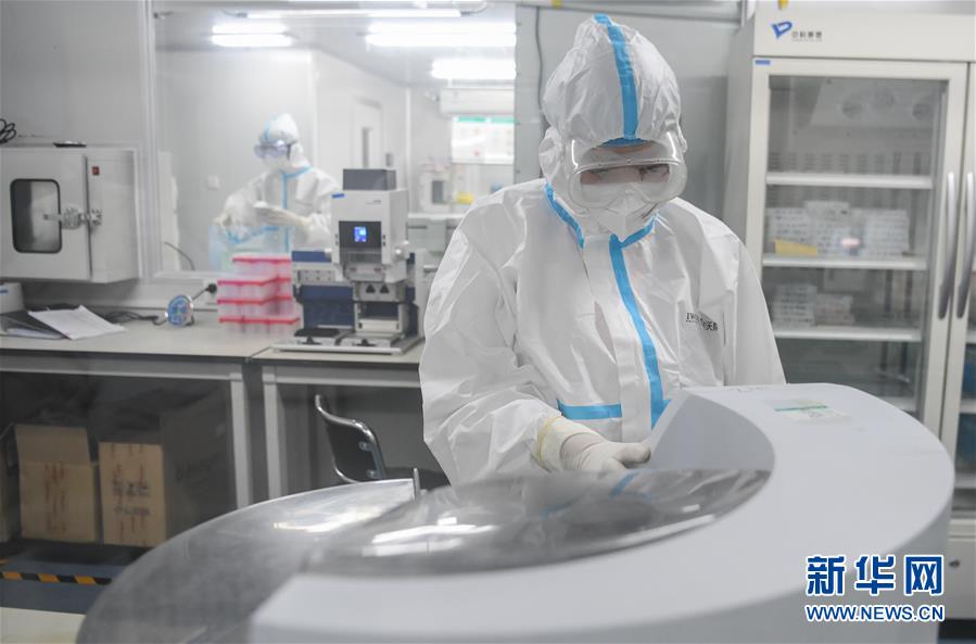 6月2日,在武漢金域醫(yī)學(xué)檢驗(yàn)所里,檢測人員在工作。新華社記者程敏攝。