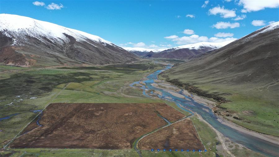 四川省甘孜藏族自治州理塘縣地處青藏高原東部,縣城海拔約4000米,有“天空之城”的美譽。時值初夏,理塘的天空碧藍如洗,巍峨的雪山環(huán)繞四周,牦牛星星點點散落于曠野之上,構(gòu)成一幅高原特有的壯美圖景。新華社記者李夢馨攝。