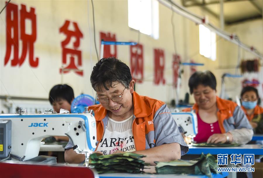 6月3日,村民在深州市高古莊鎮(zhèn)鳳凰池村扶貧車間做縫紉工作。今年以來,河北省深州市圍繞決勝全面小康、決戰(zhàn)脫貧攻堅(jiān)任務(wù)目標(biāo),在推進(jìn)產(chǎn)業(yè)扶貧的過程中注重激發(fā)內(nèi)生動(dòng)力,通過電商扶貧、扶貧車間、特色種植養(yǎng)殖等多種形式,提升自我“造血”功能,提高貧困群眾受益度。新華社記者李曉果攝。
