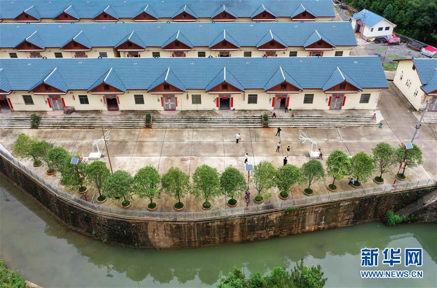 6月3日,人們在永州市新田縣兩江口村易地搬遷集中安置點(diǎn)打籃球(無人機(jī)照片)。新華社記者趙眾志攝。