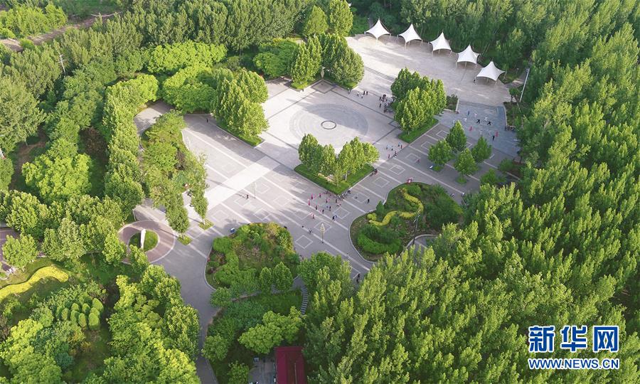 這是6月5日拍攝的文安縣森林公園(無(wú)人機(jī)照片)。近年來(lái),河北省文安縣將植樹(shù)造林與城市建設(shè)有機(jī)融合,探索“政府引導(dǎo)、企業(yè)運(yùn)作、多方共贏”的市場(chǎng)化植樹(shù)造林新模式,大規(guī)模推進(jìn)國(guó)土綠化,打造人與自然和諧共生的優(yōu)美生態(tài)環(huán)境,構(gòu)筑京津雄綠色屏障。截至目前,該縣森林覆蓋率已經(jīng)達(dá)到33%,城區(qū)綠地面積達(dá)到36.48%。新華社記者李曉果攝。