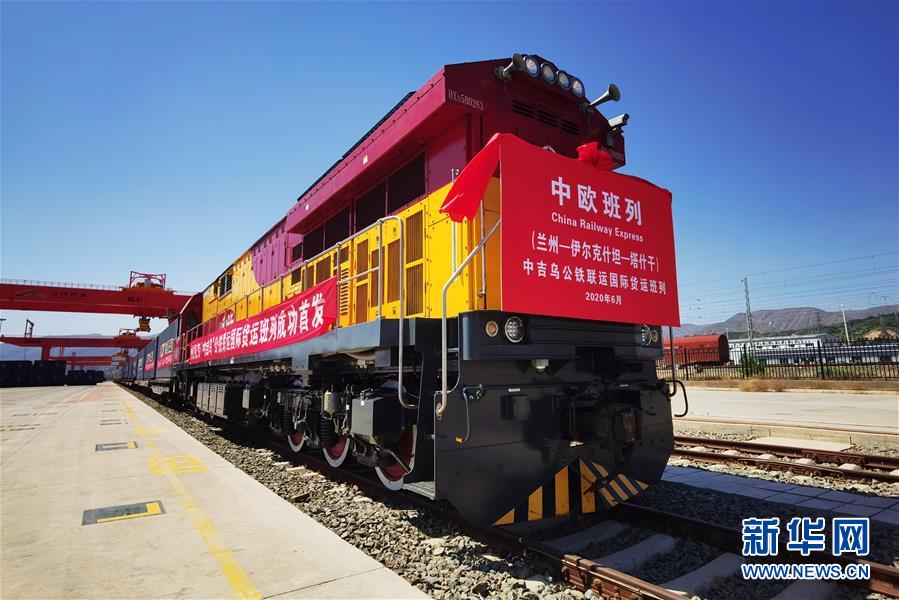 這是6月5日在甘肅蘭州國際陸港拍攝的準(zhǔn)備發(fā)車的“中吉烏”公鐵聯(lián)運國際貨運班列。新華社記者范培珅攝。