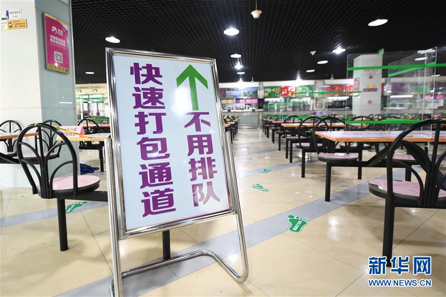 清華大學(xué)紫荊園食堂內(nèi)設(shè)有快速打包通道,方便學(xué)生快速取餐(6月6日攝)。 新華社記者 鞠煥宗 攝