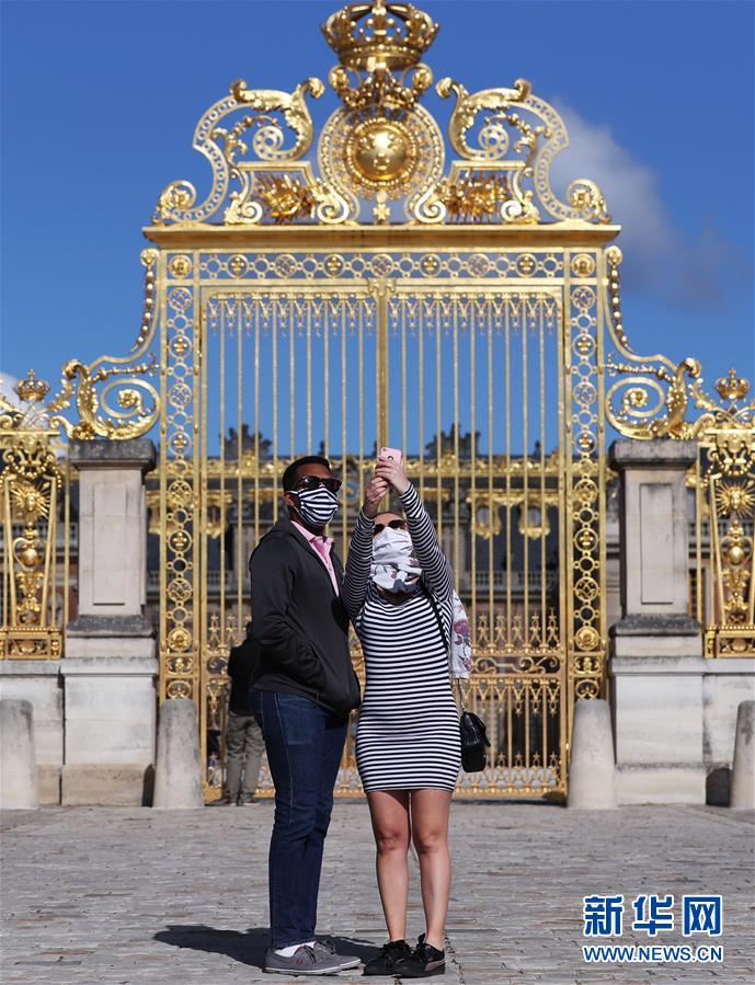 6月6日,游客在法國(guó)巴黎近郊的凡爾賽宮前自拍。 新華社記者 高靜 攝